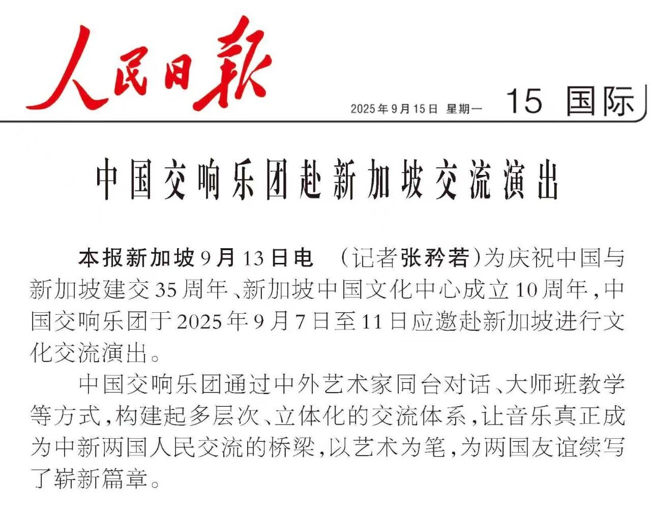 中外媒体报道中国交响乐团赴新加坡交流演出